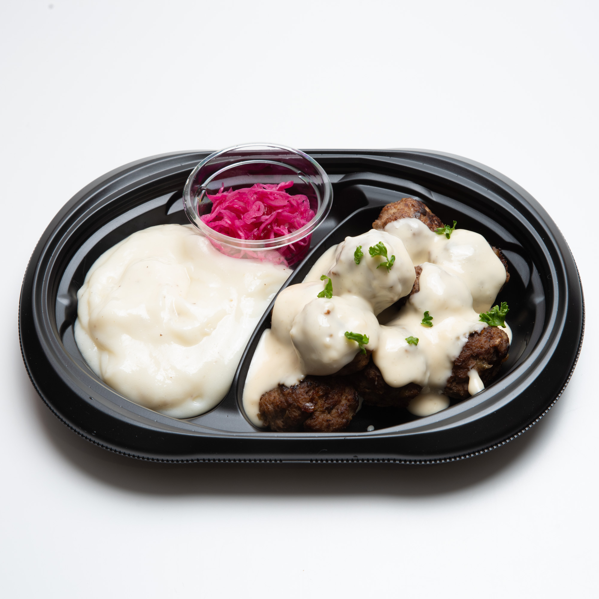 スウェーデンのマスタードを入れて捏ねたお肉をあっさりとしたクリームソースで仕上げました。
