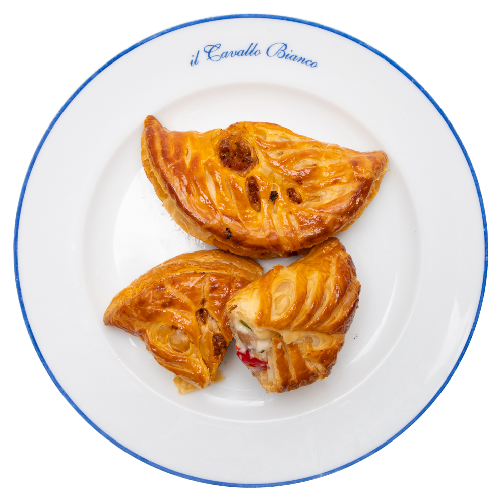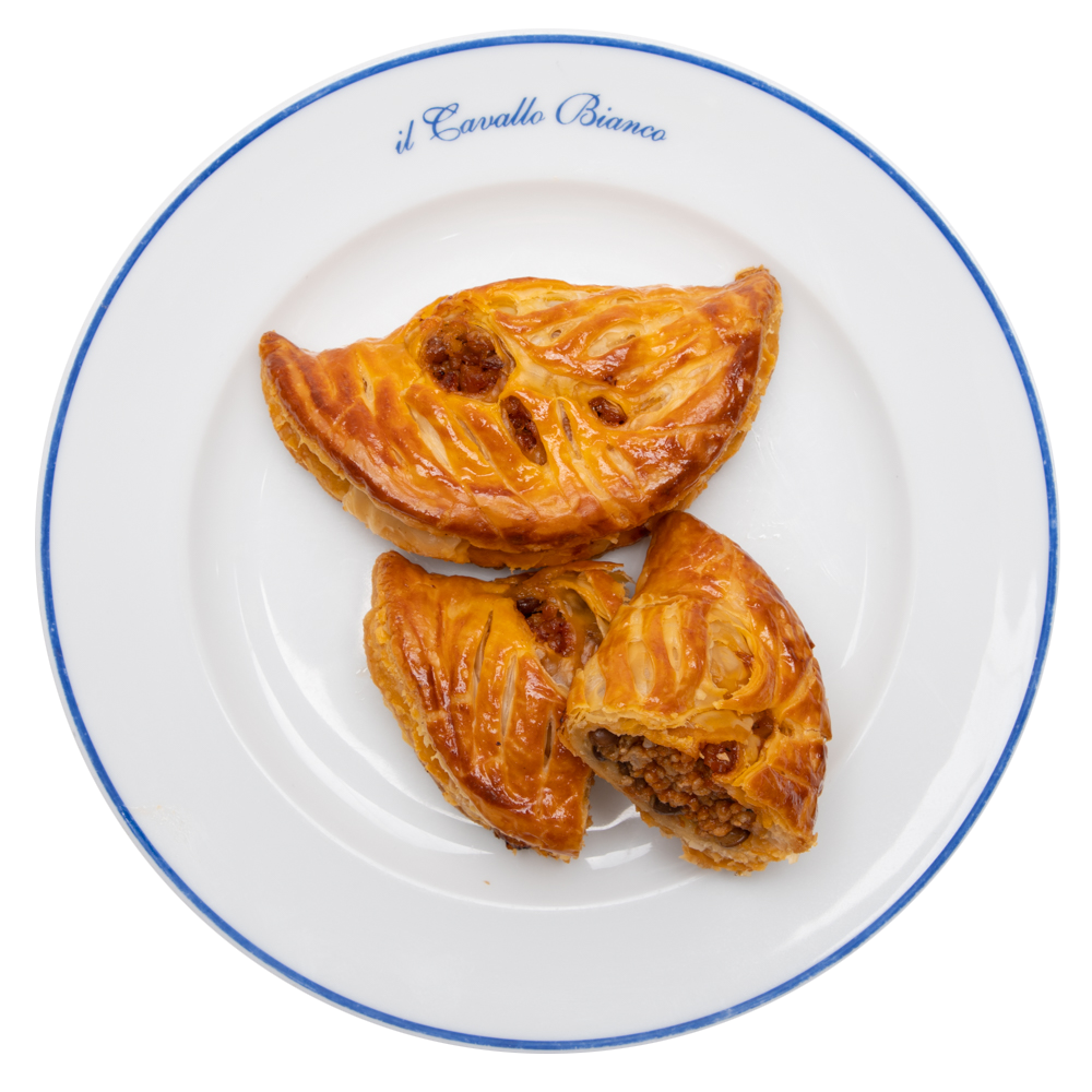 パイ生地に自家製ミートソースとレンズ豆を包んで焼き上げました。