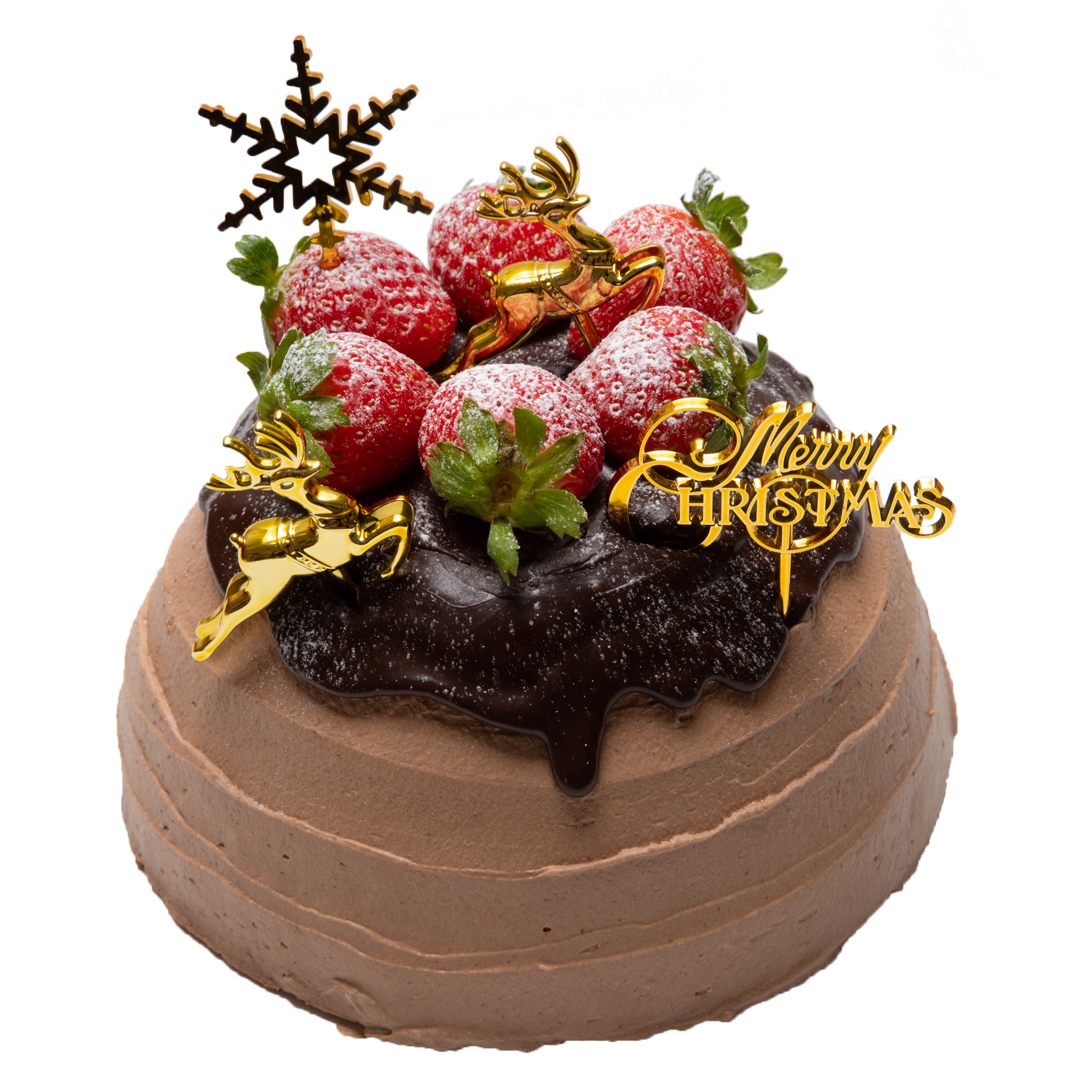 説明:ベルギー産スイートチョコレートの甘さのみで仕上げました。とろけるショコラに苺の赤がきらめくチョコレートケーキです。